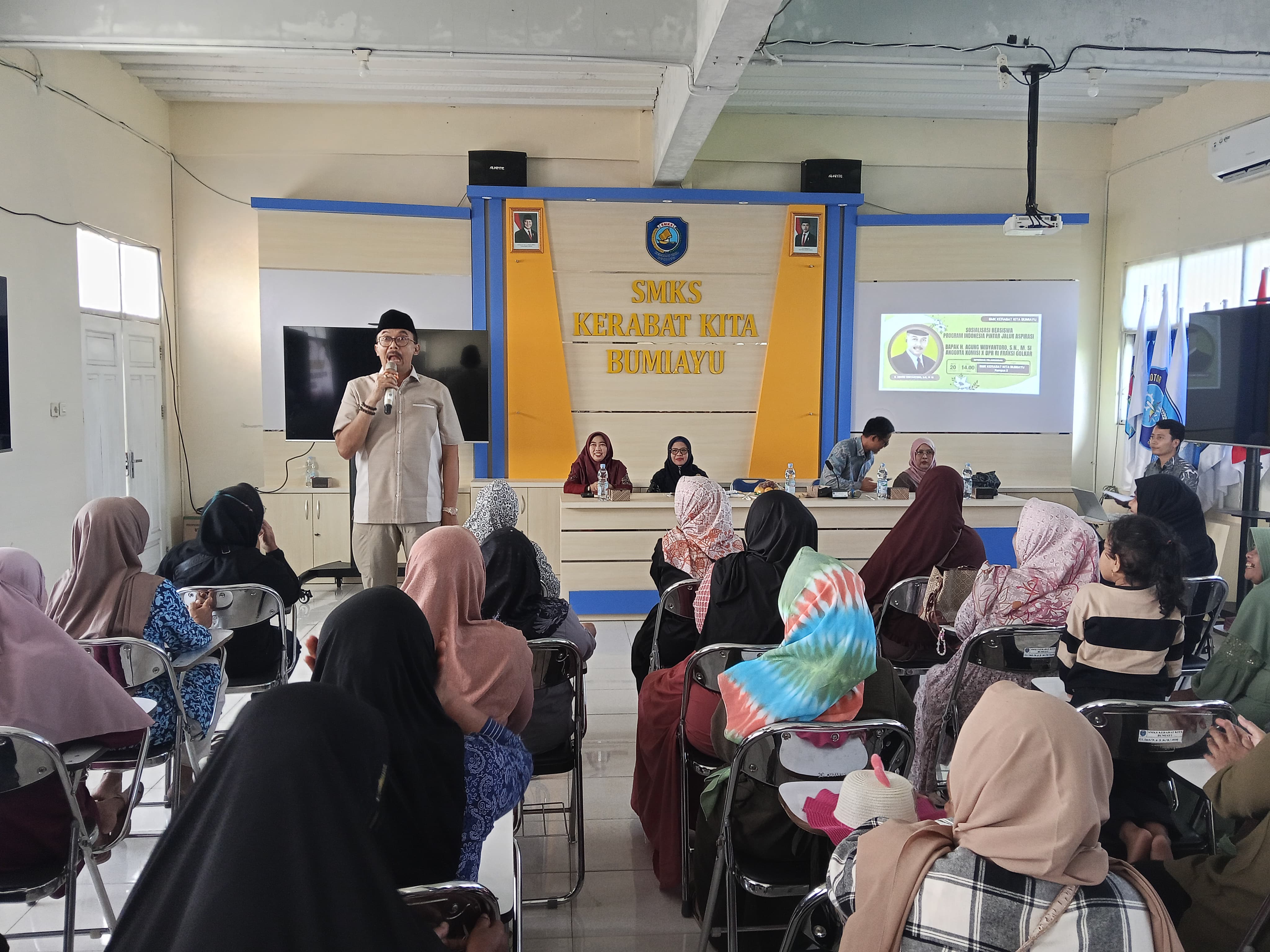 Bumiayu, 20 Juni 2025 — SMK Kerabat Kita Bumiayu kembali menunjukkan kepeduliannya terhadap keberlangsungan pendidikan siswa-siswinya dengan menggelar kegiatan Sosialisasi Program Indonesia Pintar (PIP) Aspirasi dari DPR RI pada hari Jum’at, 20 Juni 2025. Acara ini berlangsung di Aula Kampus 2 SMK Kerabat Kita Bumiayu dan dihadiri oleh berbagai pihak penting.