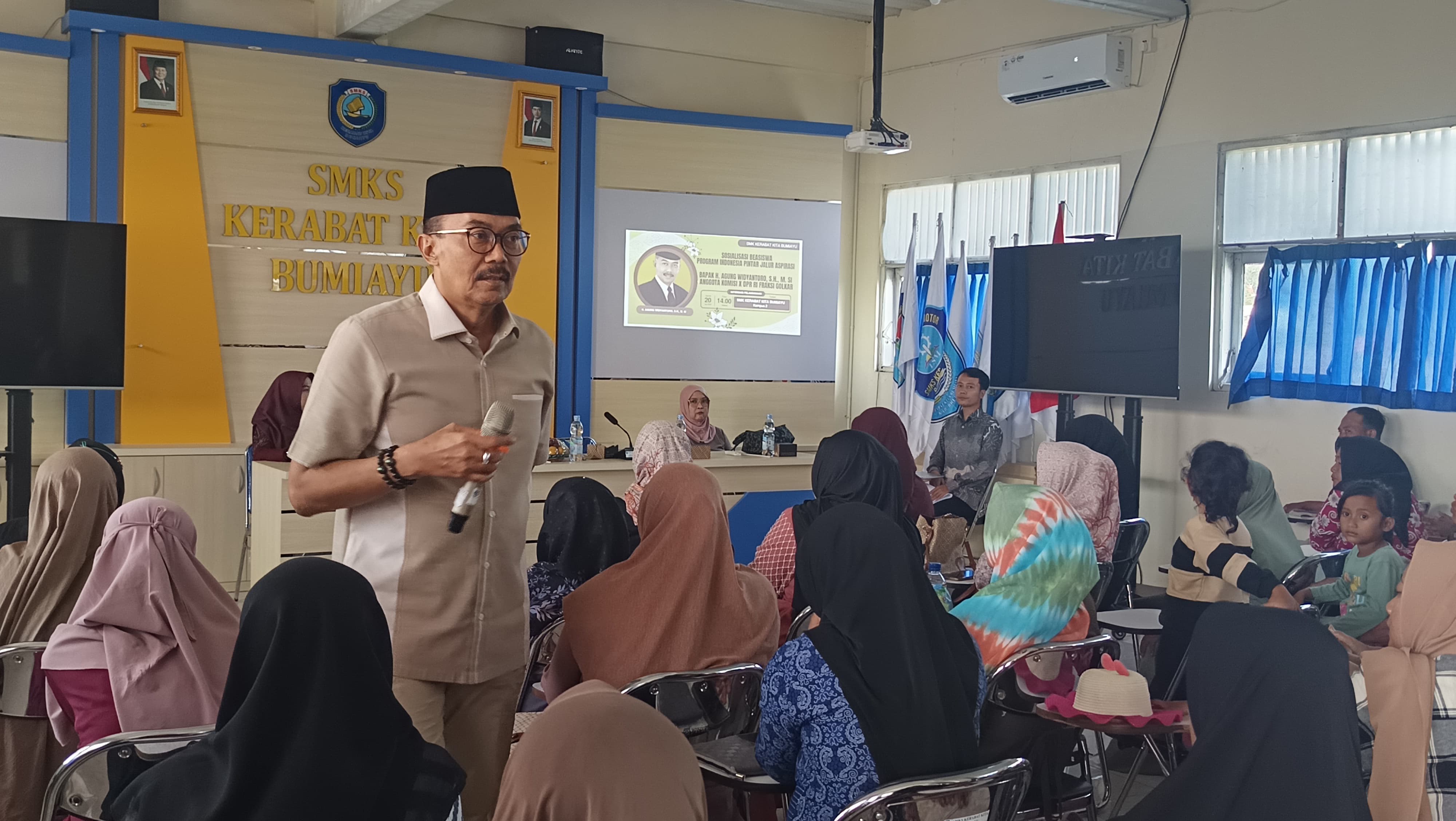 Bumiayu, 20 Juni 2025 — SMK Kerabat Kita Bumiayu kembali menunjukkan kepeduliannya terhadap keberlangsungan pendidikan siswa-siswinya dengan menggelar kegiatan Sosialisasi Program Indonesia Pintar (PIP) Aspirasi dari DPR RI pada hari Jum’at, 20 Juni 2025. Acara ini berlangsung di Aula Kampus 2 SMK Kerabat Kita Bumiayu dan dihadiri oleh berbagai pihak penting.